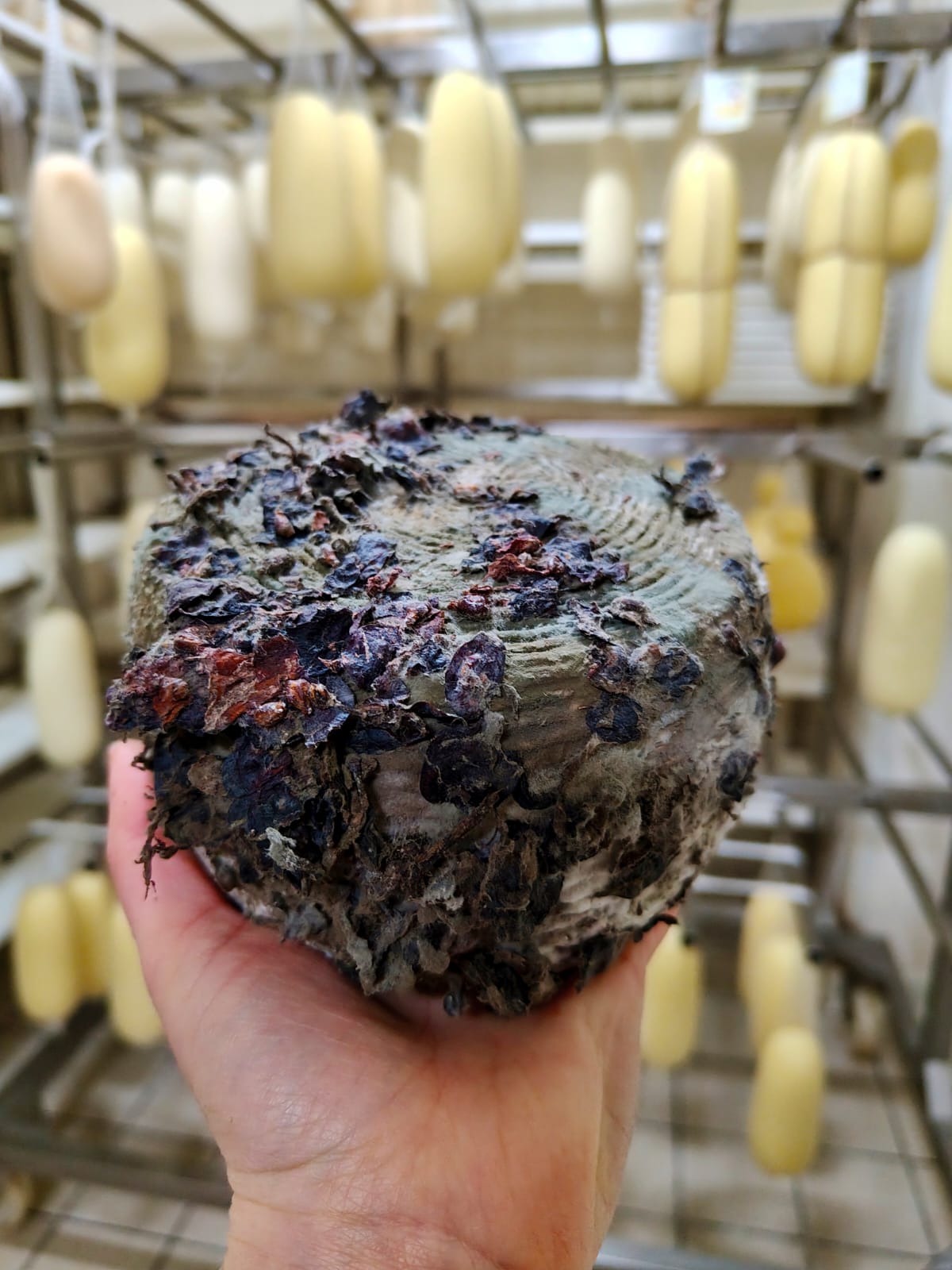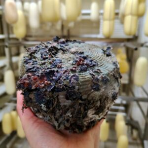 N.B.: il prodotto si presenta ricoperto da una leggera patina grigia naturale, costituita dai batteri lattici e dalle muffe delle vinacce: è proprio questa che conferisce i profumi e i sapori caratteristici al formaggio.