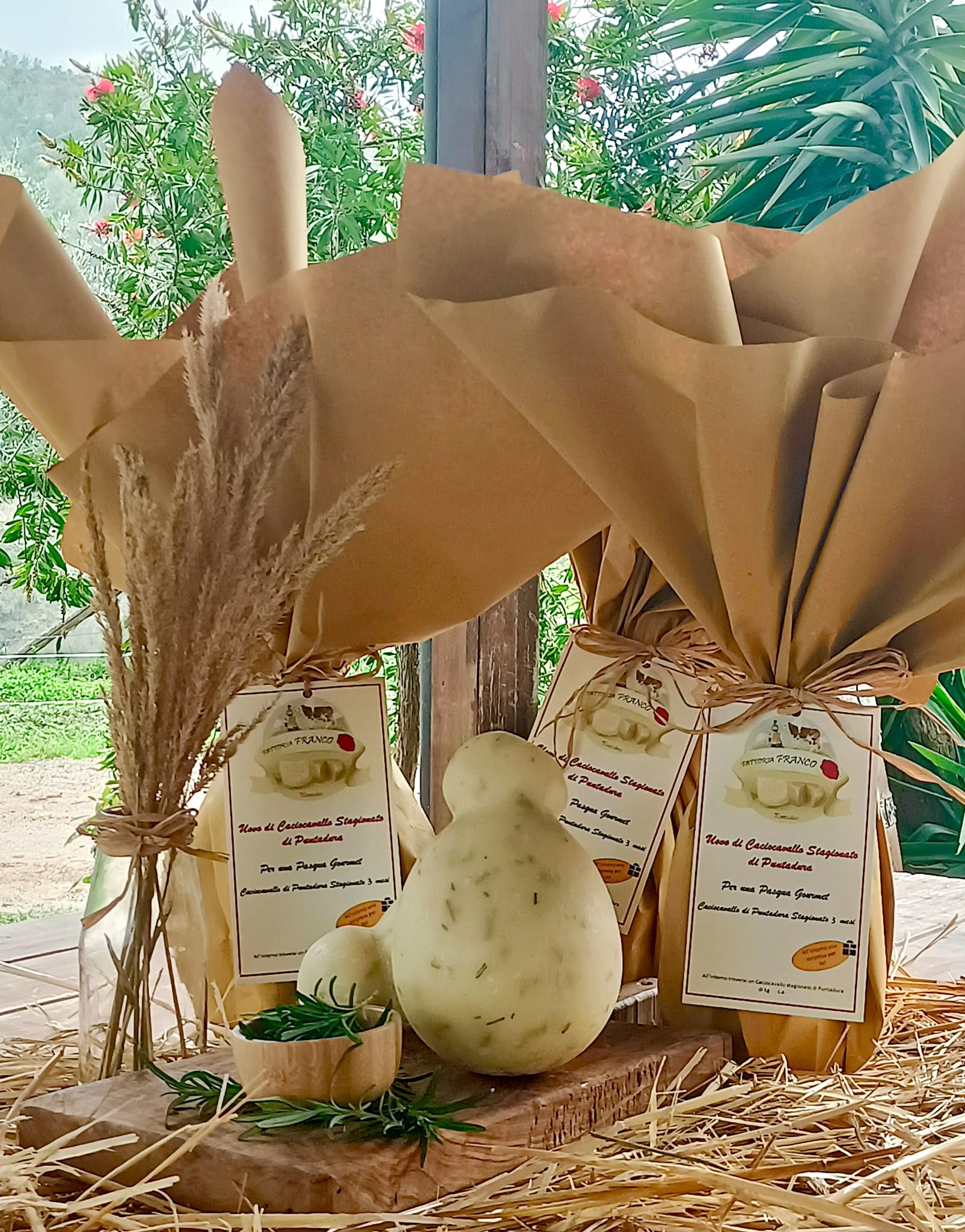 Per offrirti un’esperienza ancora più ricca e profumata abbiamo creato le UOVA DI CACIOCAVALLO DI PUNTADURA al rosmarino. Per un gusto inconfondibile e avvolgente. Ogni fetta è un perfetto equilibrio tra il sapore delicato del caciocavallo e l’aroma fresco del rosmarino. Il suo profumo avvolgente e la sua consistenza compatta lo rendono perfetto per chi cerca un formaggio dal carattere deciso e ricercato. Ogni Uovo di Caciocavallo al Rosmarino di Puntadura pesa circa 1 kg ed è stagionato per 2 mesi, per un gusto unico e raffinato che saprà conquistare il tuo palato.
